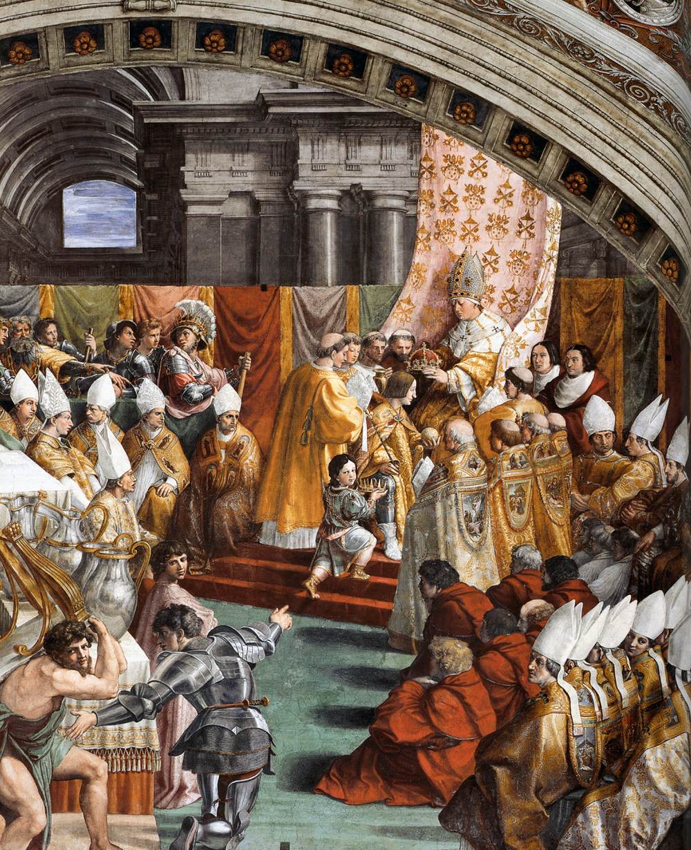 (Le couronnement de Charlemagne par Sanzio Raffaello (1516-17)Fresque des palais pontificaux, Vatican)